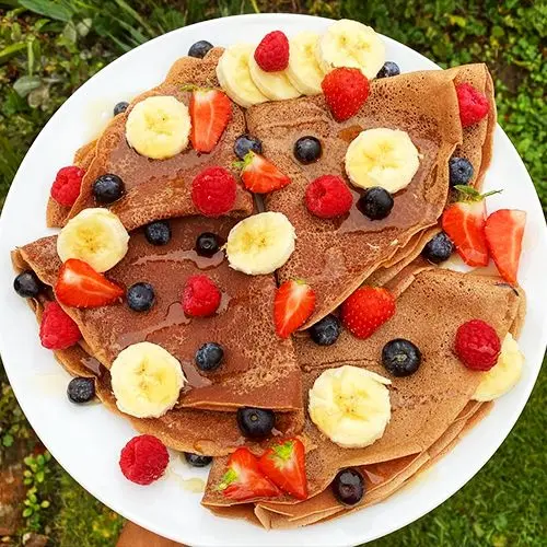 میتوانید ۲ ق غذا خوری پودر کاکائو به دستور اضافه و ۲ ق غذا خوری آرد کم کنید تا کرپ کاکائویی داشته باشید.