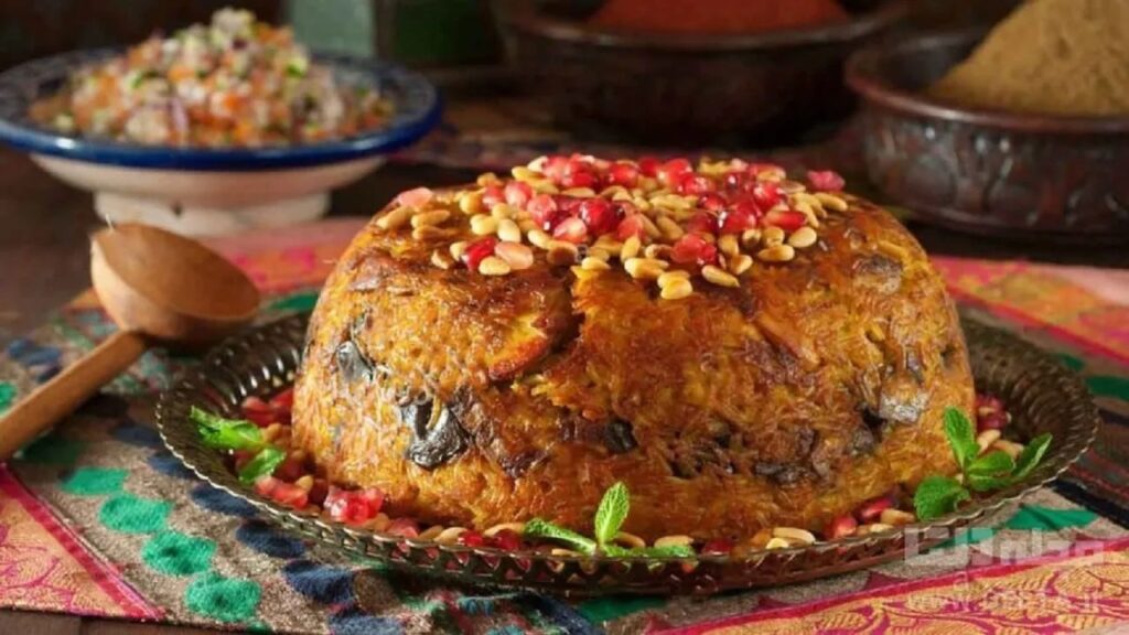 مرحله ششم: سرو مقلوبه مرغ و بادمجان