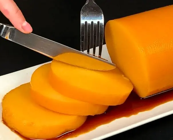 فراشپز- در این ویدئو یک آشپز آلمانی با مواد اولیه شامل: یک کیلوگرم کدوتنبل، ۵۰۰ میلی لیتر شیر، ۵۰ گرم شکر و ۳۰ گرم پودر آگار آگار این دسر را آماده میکند.