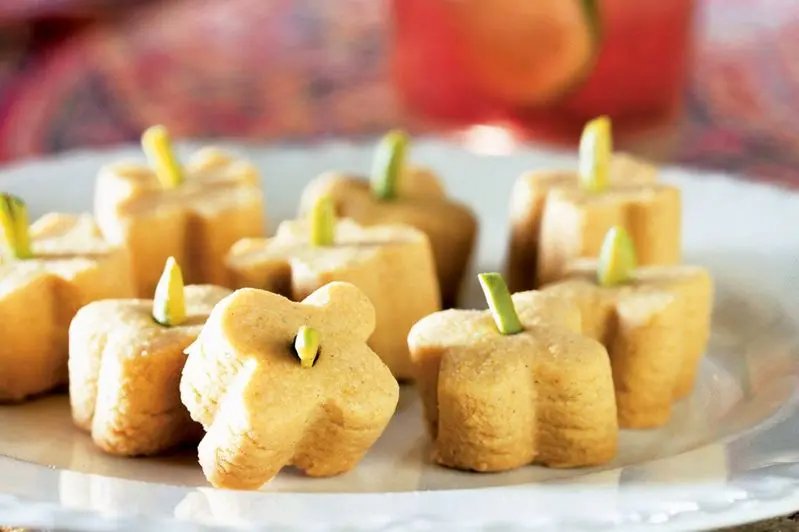 ۱۰. در پایان میتوانید شیرینیهای خود را با خلال پسته و بادام تزئین کنید.