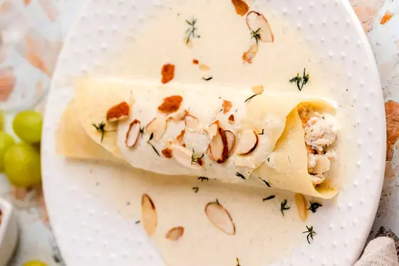 طرز تهیه کرپ مرغ و اسفناج با سس خامهای