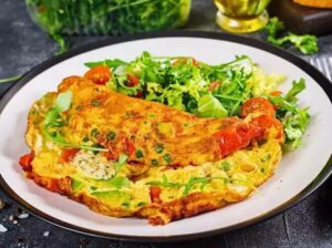 برای تهیه املت سبزیجات، ۲ عدد تخم مرغ بزرگ را در ظرفی بشکنید. یک چهارم فنجان فلفل دلمهای خرد شده، یک چهارم فنجان گوجه فرنگی خرد شده، یک چهارم فنجان اسفناج خرد شده، ۱ قاشق چایخوری روغن زیتون را به آن اضافه کرده و مخلوط کنید. وقتی خمیر آماده شد، آن را روی تابه نچسب بریزید و بگذارید بپزد تا دو طرف آن قهوهای طلایی شود. این املت حاوی ۲۰۵ کالری و فوق العاده سالم است و یک منبع انرژی فوری را فراهم میکند.