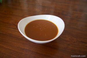 بعد آب گوشت را داخل آرد تفت داده شده بریزید تا به جوش بیاید.