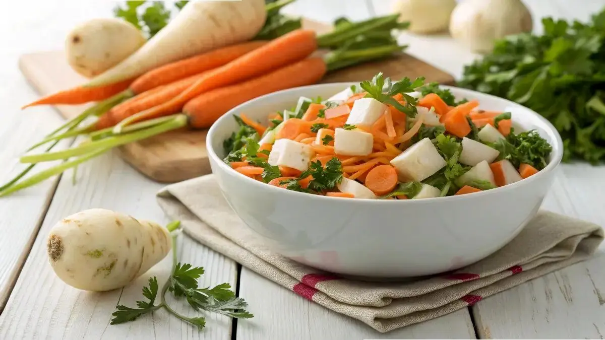 سالاد شلغم یکی از گزینه‌های سالم و سبک برای وعده‌های اصلی و عصرانه است که طعم تازه، ترد و کمی شیرین شلغم و هویج را با عطر جعفری و کرانچی بودن تخمه کدو ترکیب می‌کند.