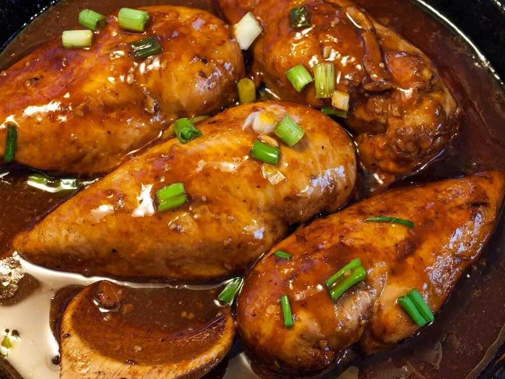 ۵ ـ در مرحله بعد کمی روغن داخل یک ماهی تابه بریزید و آن را روی حرارت متوسط اجاق گاز بگذارید تا گرم شود؛ سپس مرغها را از توی مواد بیرون بکشید و داخل ماهی تابه بچینید. در آخر همه سس را روی مرغها بریزید و در ماهیتابه را بگذراید. حرارت را کم کنید و اجازه بدهید تا مرغ با مواد کمکم بپزد. حدودا یک ساعت و نیم زمان لازم است.