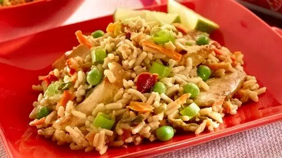 برنج مرغ سرخ شده چینی به سبک رستورانی