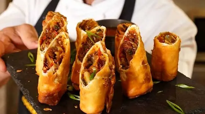 طرز تهیه اسپرینگ رول با سس اسفناج